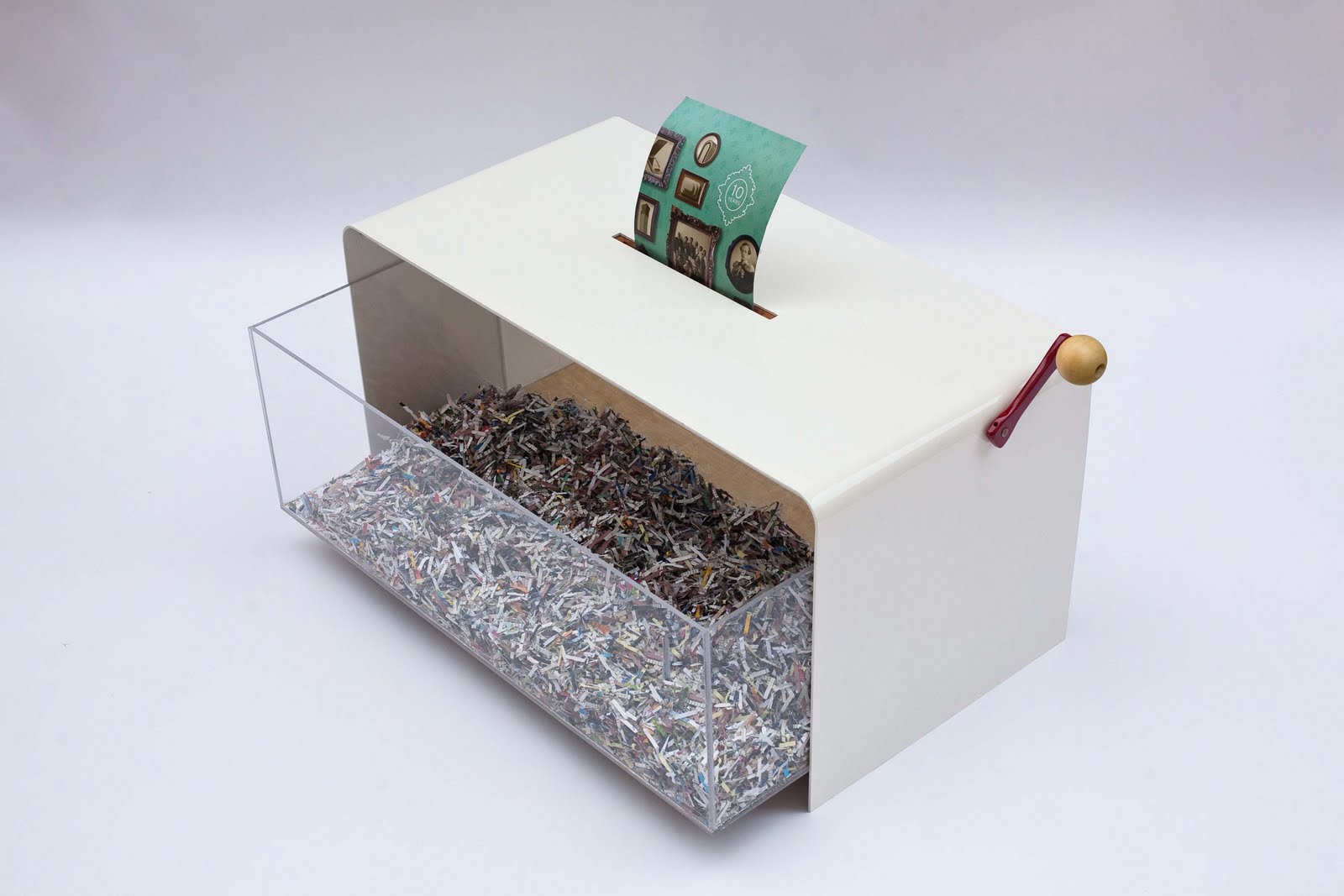 what a clever idea! i like how they made the table clear so when the shredded paper goes in it creates a design of its